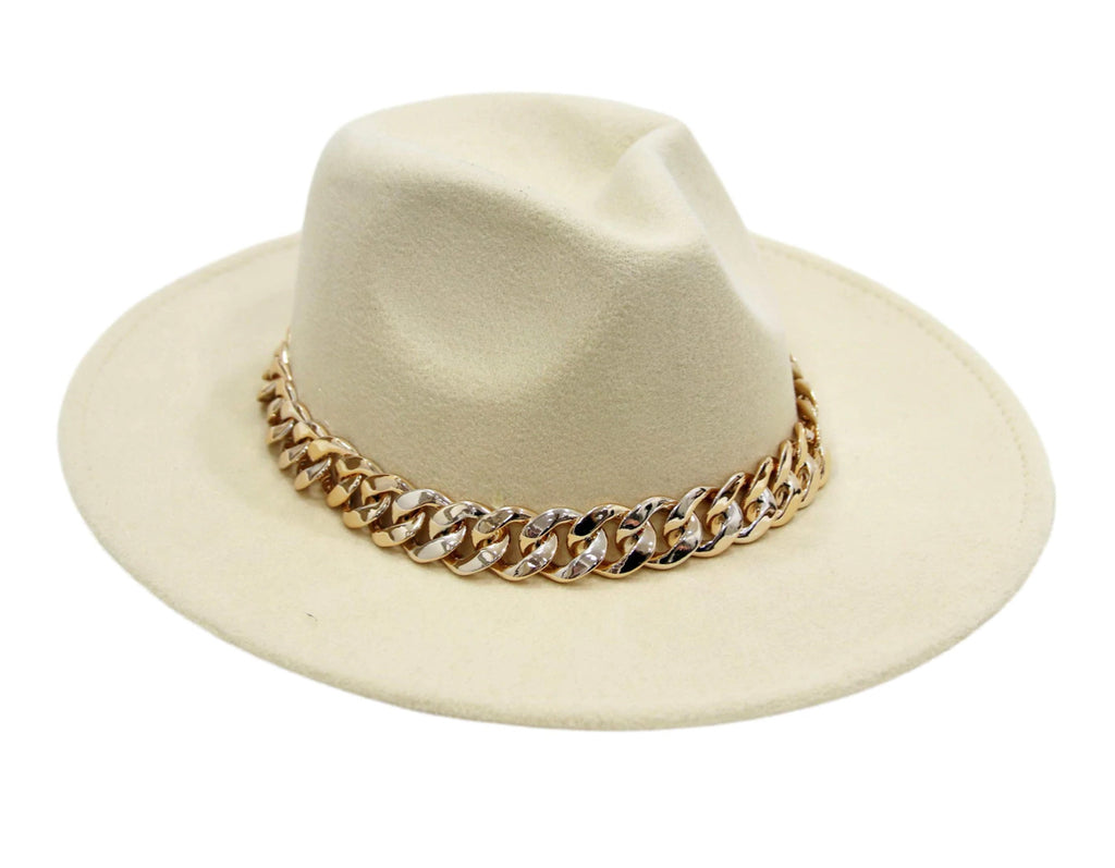 Featuring a gold chain and felt material. Finish your look with the perfect accessory.