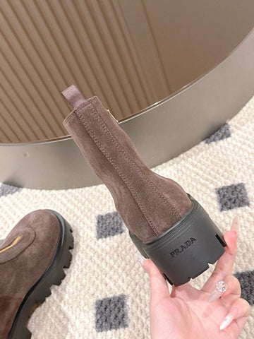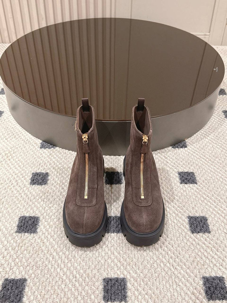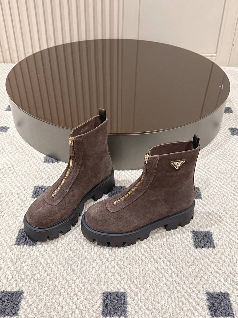 Pre Order Front Zip Logo Suede Boots