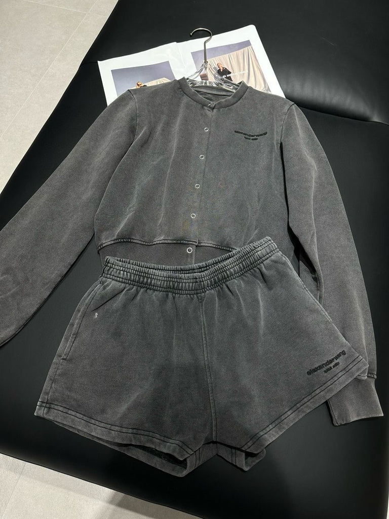 Pre Order Luxury Aw Logo Charcoal Short & Bomber Jacket Set
